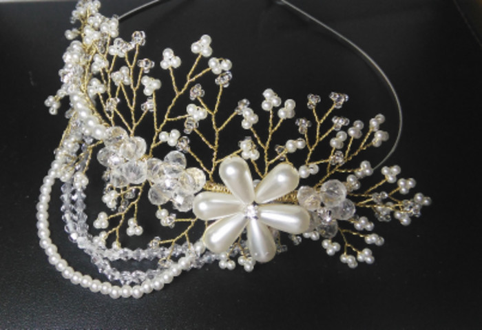 珍珠象征著美滿幸福,運用珍珠作為頭飾不僅能體現(xiàn)優(yōu)雅的中式風情,更使新娘看起來十分端莊大方,艷而不媚、華而不俗。不論是搭配婚紗還是旗袍,純潔典雅的珍珠頭飾都會讓新娘顯得更加嫵媚動人。一般來說,珍珠發(fā)飾比較適宜搭配緞面、雪紡的婚紗。