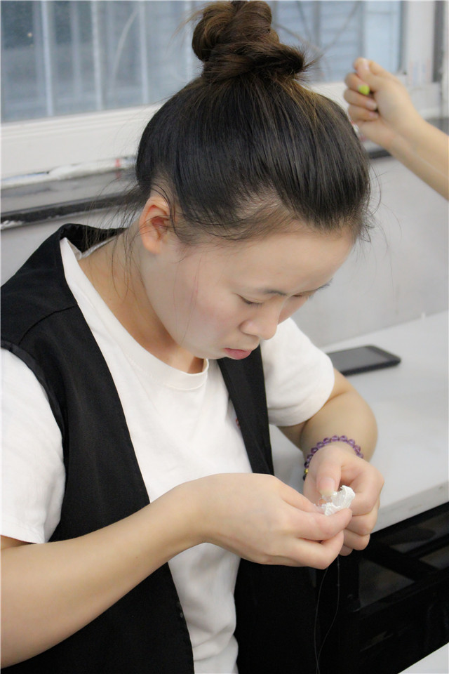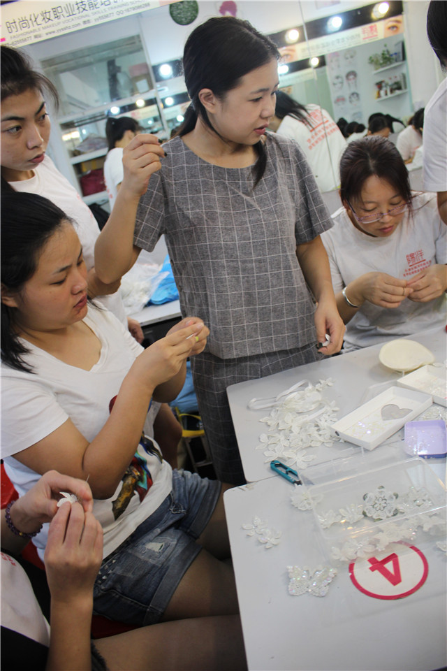樂清陽洋時尚化妝培訓學校飾品制作課間 看似簡單小巧的材料,經(jīng)過一番“折騰”也很有個性