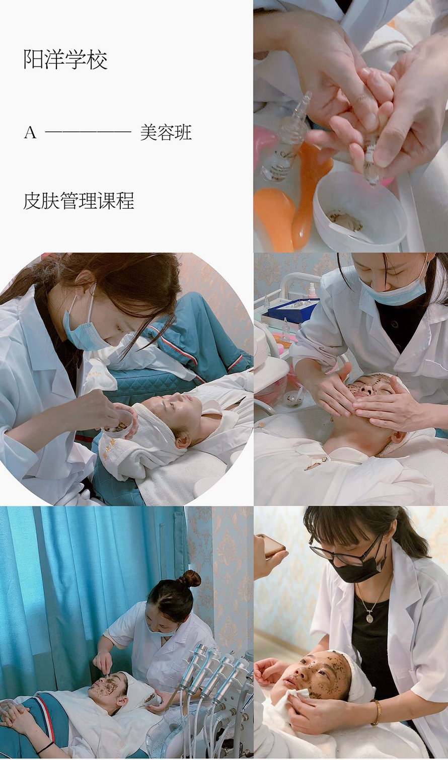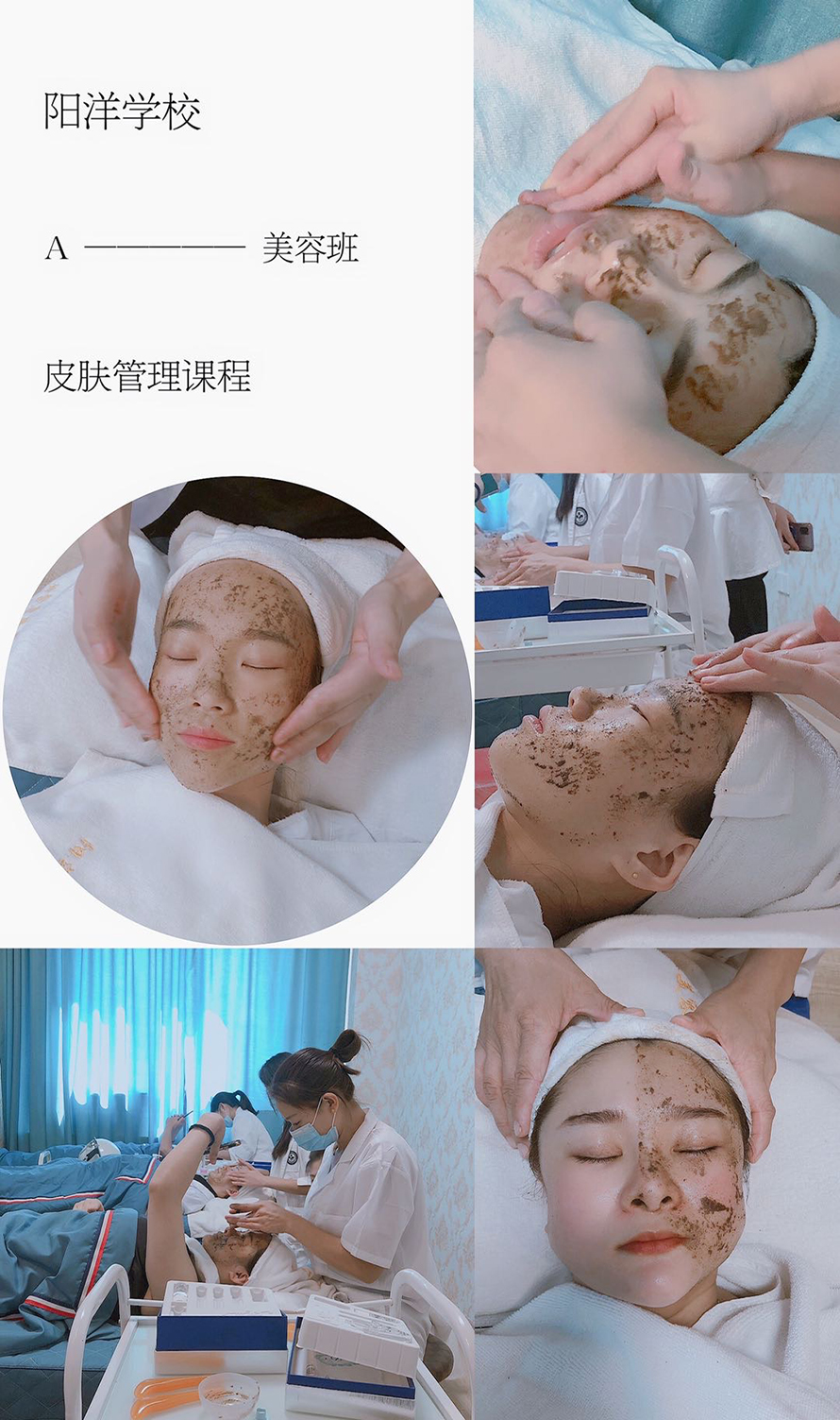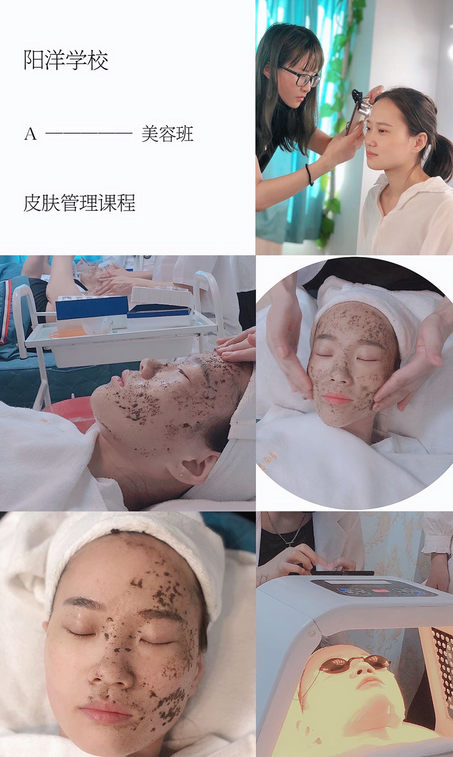 學(xué)習(xí)皮膚結(jié)構(gòu),皮膚功能,人體經(jīng)絡(luò)學(xué),臟腑學(xué),五行學(xué)的專業(yè)講解及養(yǎng)生護(hù)理療法。面部及身體實(shí)操手法:卸妝,清潔,面部補(bǔ)水護(hù)理,深層排毒,刮痧,撥筋及身體部位,物理脫毛,肩頸背部疏通人體經(jīng)絡(luò),刺激臟腑,淋巴疏通及排毒理論實(shí)操,促進(jìn)人體血液循環(huán),淋巴循環(huán),從而達(dá)到調(diào)理慢性疾病的神奇功效, 陽(yáng)洋美容課堂學(xué)生練習(xí)花絮------清潔 洗臉 做面膜