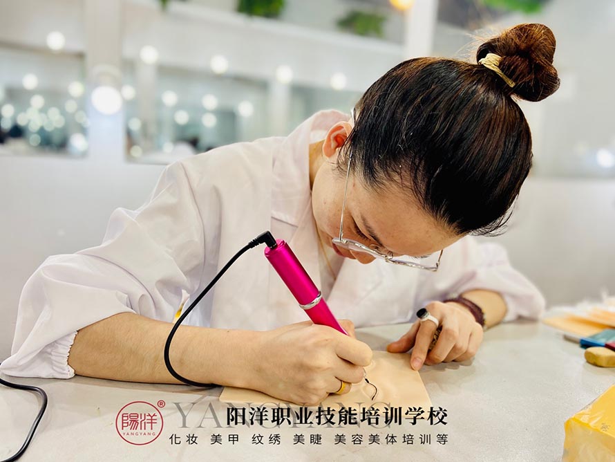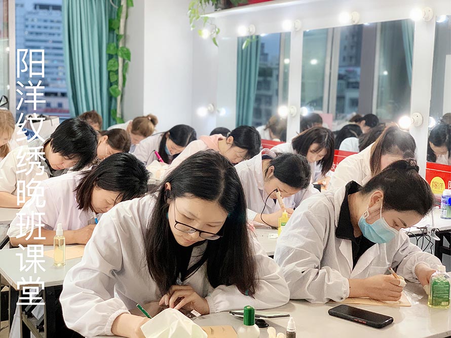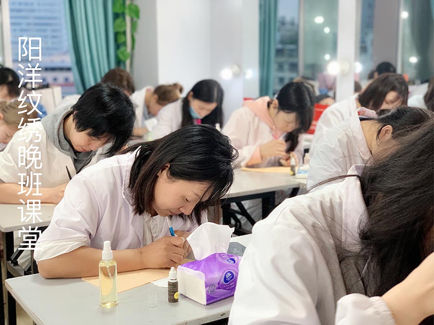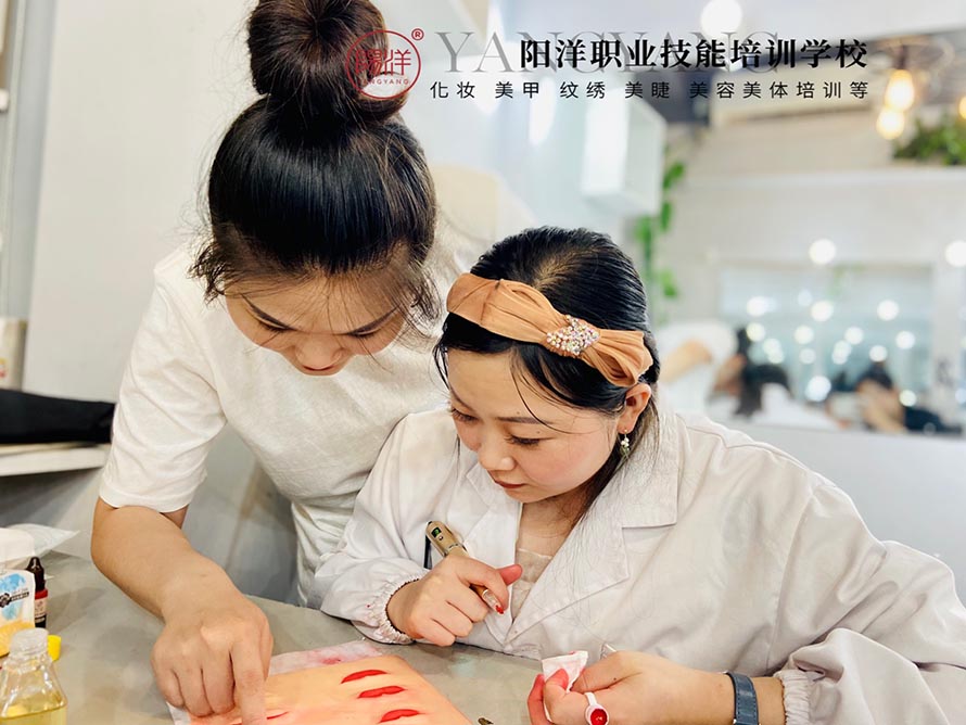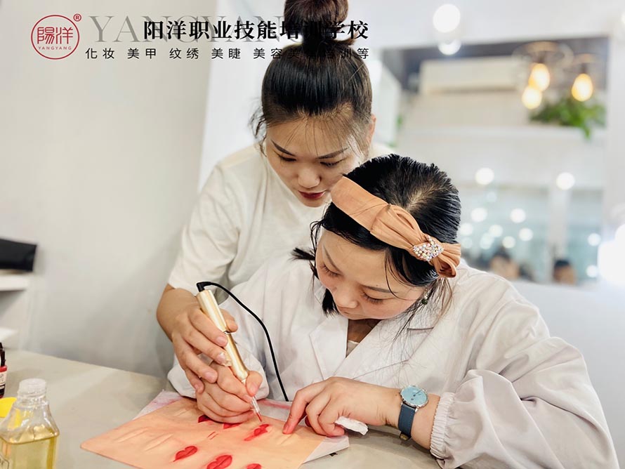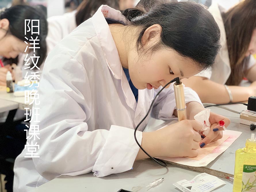 我們的紋繡老師在教同學(xué)學(xué)習(xí)唇部的手法哦,真正的做到一對(duì)一手把手教學(xué)。