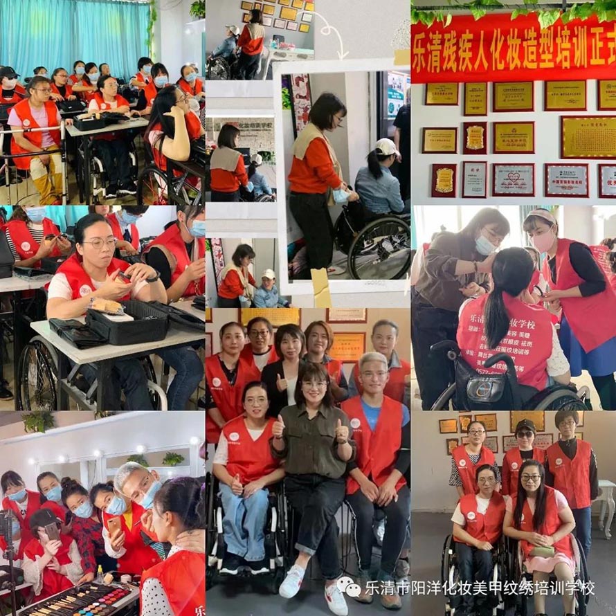 陽洋化妝學校開辦至今,常年致力于公益事業(yè)活動。學校為社會進行公益化妝進行行動,特殊人群與孤兒聾啞人全部免費學習課程。美麗他人,成就自己。授人以魚不如授人以漁,傳授他人安身立命的一技之長,這才是真正地幫助她們,立足于社會。 今年有一位來自樂清大荊的17歲獨掌少年,本來他的父親讓他去學習理發(fā),他爸爸說一只手拿剪刀、另一只用皮筋套住假手去學習理發(fā)、期初他爸爸是這樣想的、我們的校長楊老師跟他父親說、美發(fā)用假手應該不是很方便、就推薦他學習化妝、并且是免費學習、自己不用出學費、自此他來到陽洋職業(yè)技能學校,開始他的學習之路。
