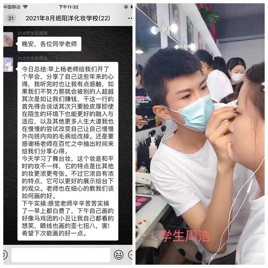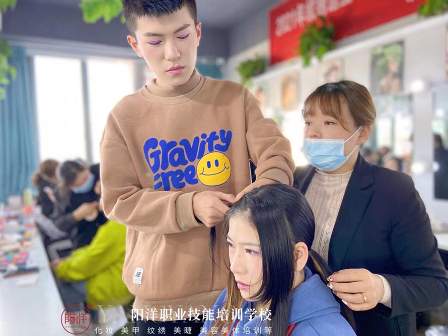 經(jīng)過這段時間的學習,他說感恩陽洋化妝培訓學校,感恩楊老師給他學習的機會,真心祝福他的未來越來越好。把他的化妝技術(shù)帶給更多的人。