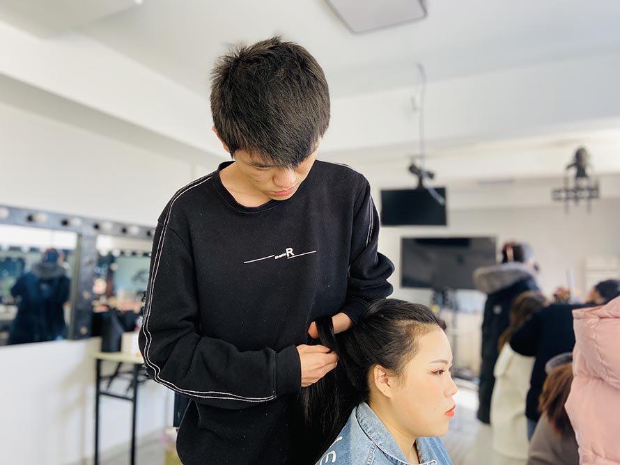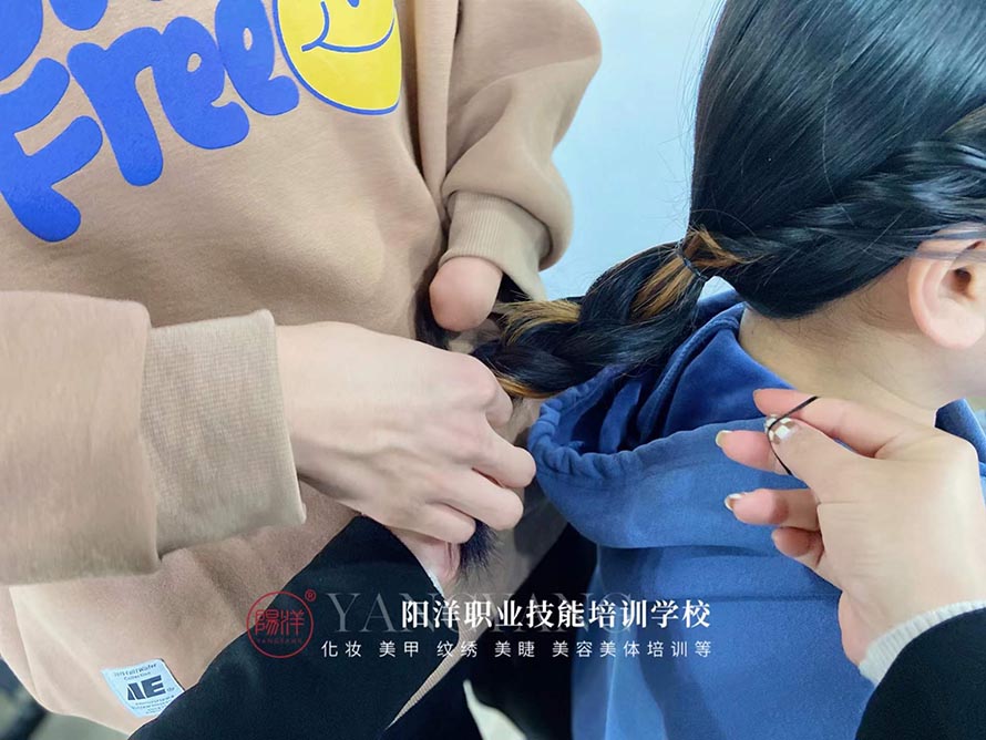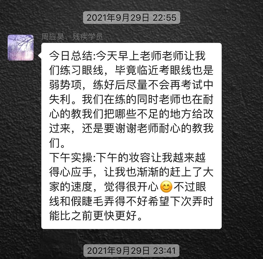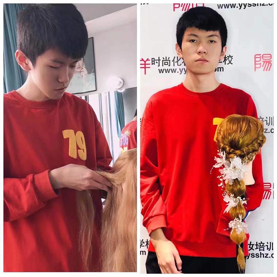 我們學校對孤兒殘疾人是免費學習。他來陽洋學習了四個月的國際化妝班,全程免費學習。他非常努力,每天回家也按時完成老師的家庭作業(yè)、第二天作業(yè)拿來老師檢查、課堂上老師一對一輔導做發(fā)型。陽洋的老師對待每一個學員都是很負責