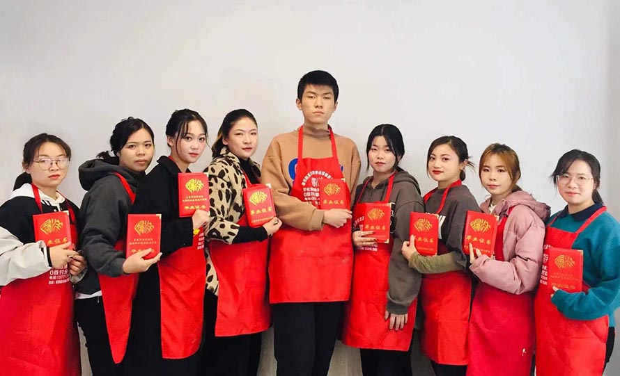 和同學的畢業(yè)合影, 畢業(yè)證書可以終身免費進修新技術(shù), 這是陽洋學校對每一個學員的承諾,學不會,接著學,學會為止。