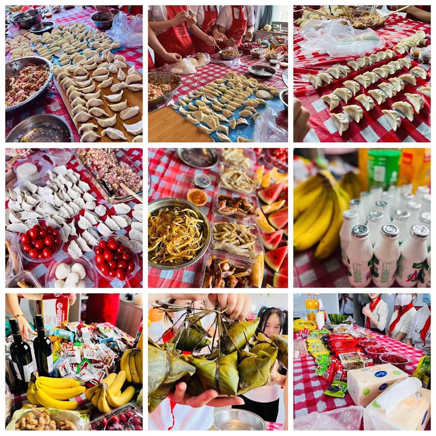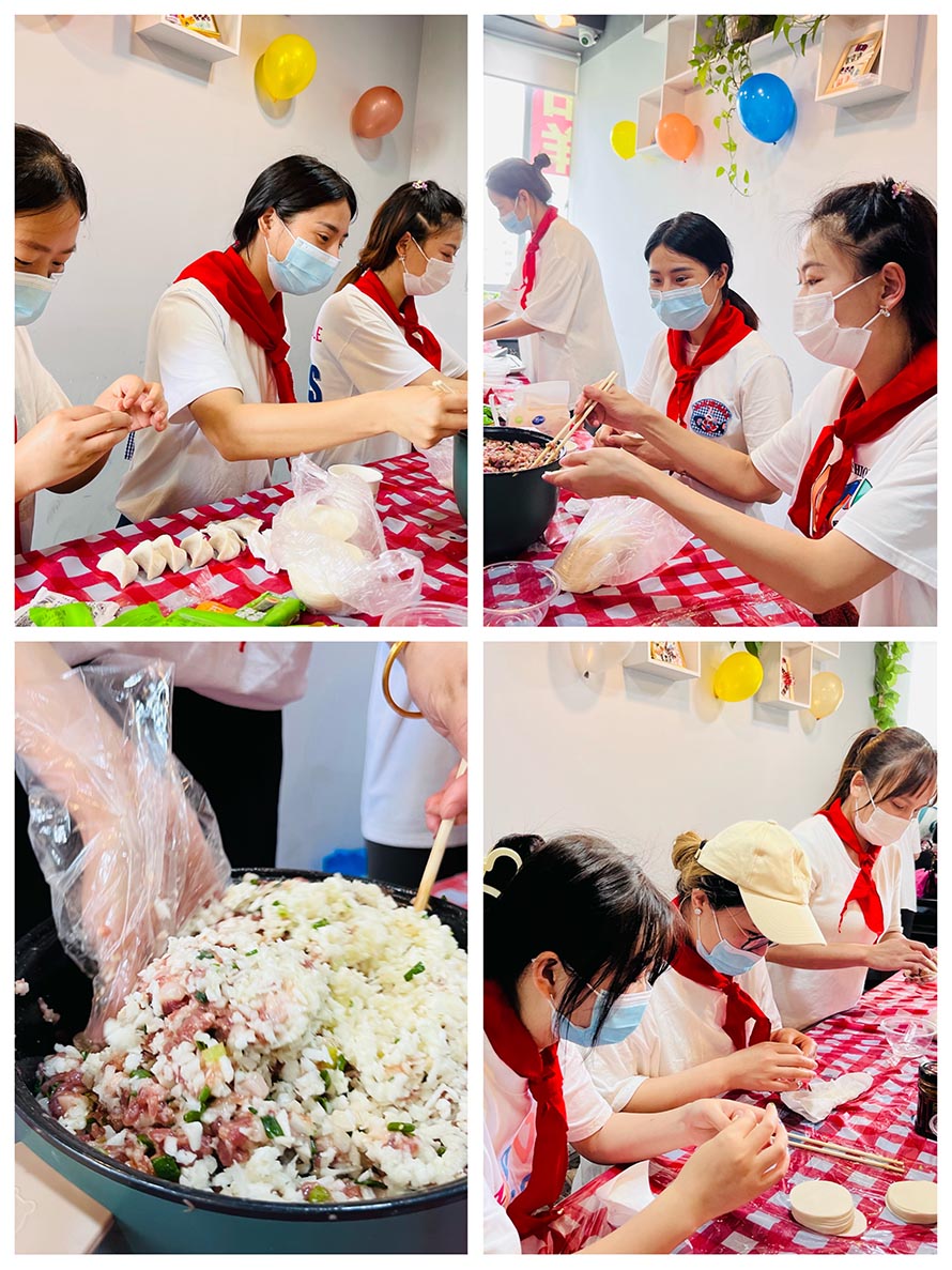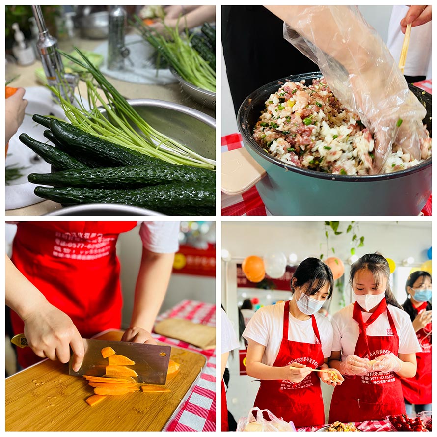 紋繡班的同學(xué)們,一群人一起忙碌的包餃子,