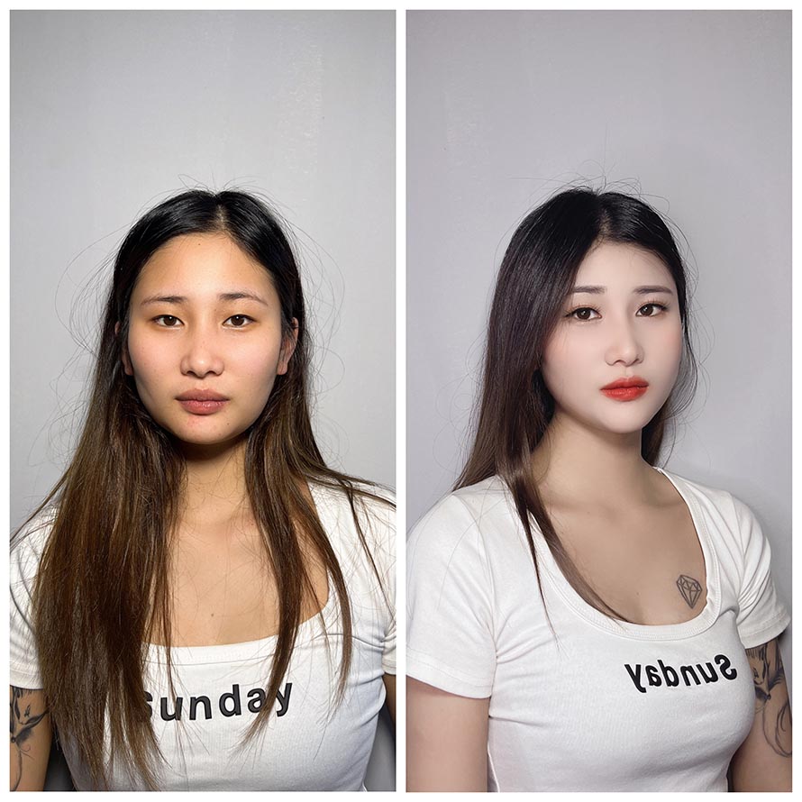 零基礎(chǔ)學(xué)員石玉紅考試化妝前后對(duì)比
