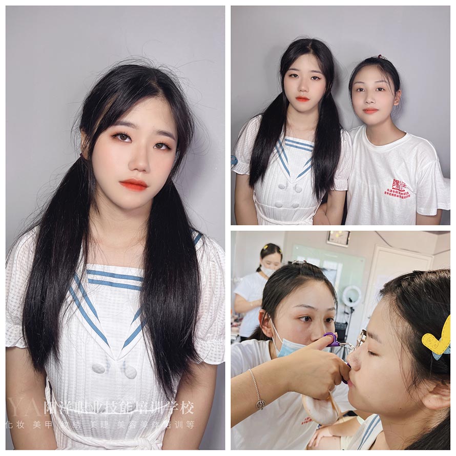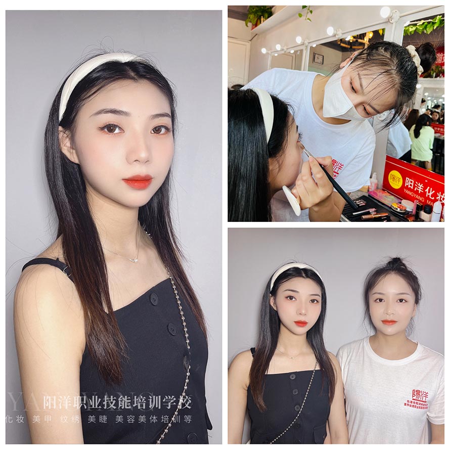 沒有來學(xué)陽洋之前是在超市當(dāng)收銀員,在一天天上班的日子中在她心里一直有個(gè)化妝師的夢(mèng)。