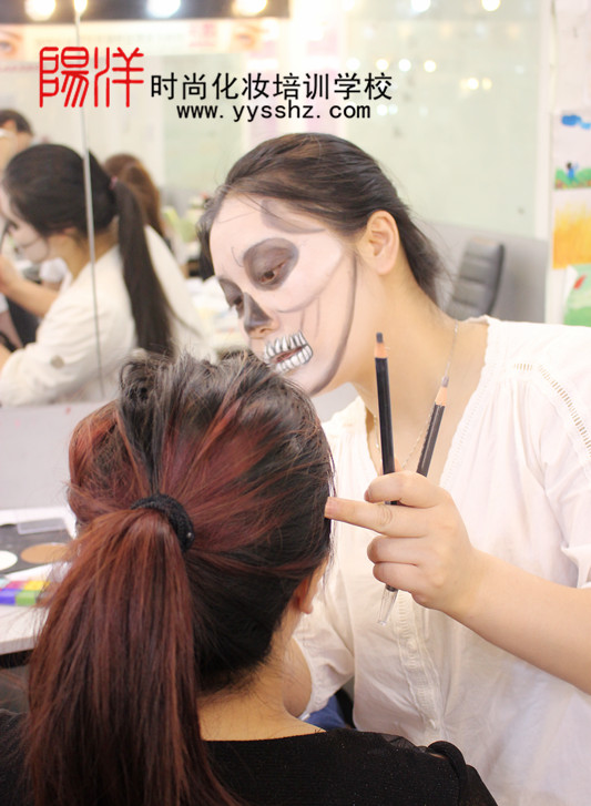 當(dāng)前位置:樂(lè)清市陽(yáng)洋職業(yè)技能培訓(xùn)學(xué)校 » 課堂練習(xí)優(yōu)秀化妝師的必修課——骷髏妝發(fā)布時(shí)間:2016-5-14 14:43:10瀏覽次數(shù):1984 |