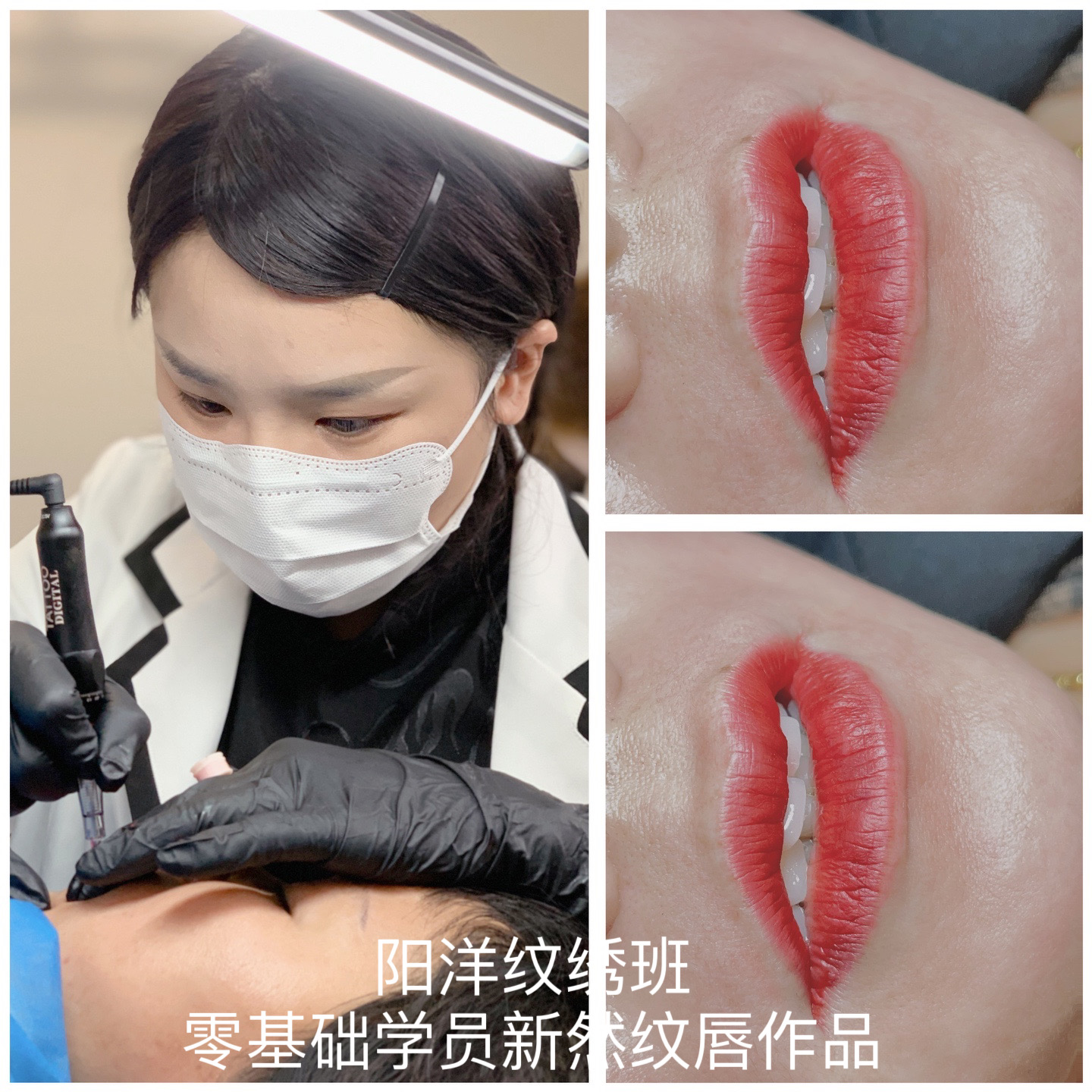 新然在校學(xué)習(xí)七天真人上手實(shí)操第一個紋唇作品