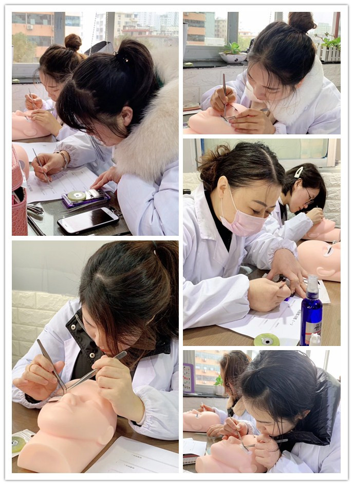 要想成為優(yōu)秀的美睫師,除了要掌握技巧更離不開(kāi)苦練技術(shù)。老師教大家客戶問(wèn)詢與溝通,睫毛SPA,眼貼膠帶的使用,單根真人實(shí)操,開(kāi)花成功的秘訣,開(kāi)花與單根嫁接的換算,開(kāi)花練習(xí)。