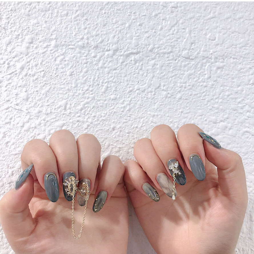 有些姑娘們走的就是奢華系列,純色調(diào)子的美甲對于她們來說太過普通,必須要有鑲磚的bingbling美甲才夠勁!