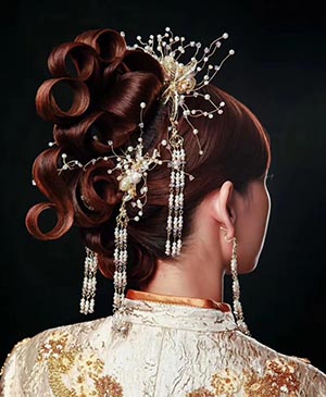 中式盤發(fā)——精致優(yōu)雅,溫婉端莊,盡顯東方新娘的優(yōu)雅韻味。