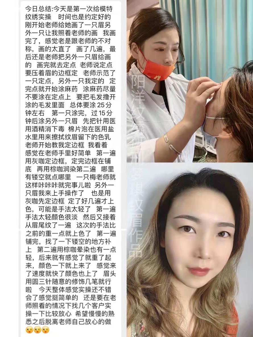 在眉形設(shè)計(jì)、霧眉、線條眉、等訓(xùn)練上都需要一周時(shí)間左右,再加上真人實(shí)操的時(shí)間。