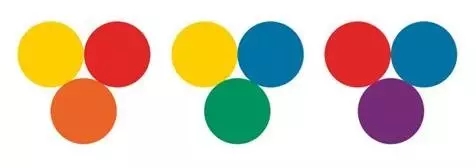 2. 間色是由兩種原色相混合而成的顏色,也稱為第二次色。顏料三間色是橙(黃+紅),綠(黃+藍(lán)),紫(紅+藍(lán))。