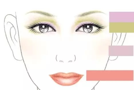 明度比淡色調(diào)略低,色相和鮮艷度比淡色調(diào)略為清晰,淺色調(diào)妝淡雅,親切、溫柔,適合職業(yè)妝和新娘白紗妝、當(dāng)天妝。