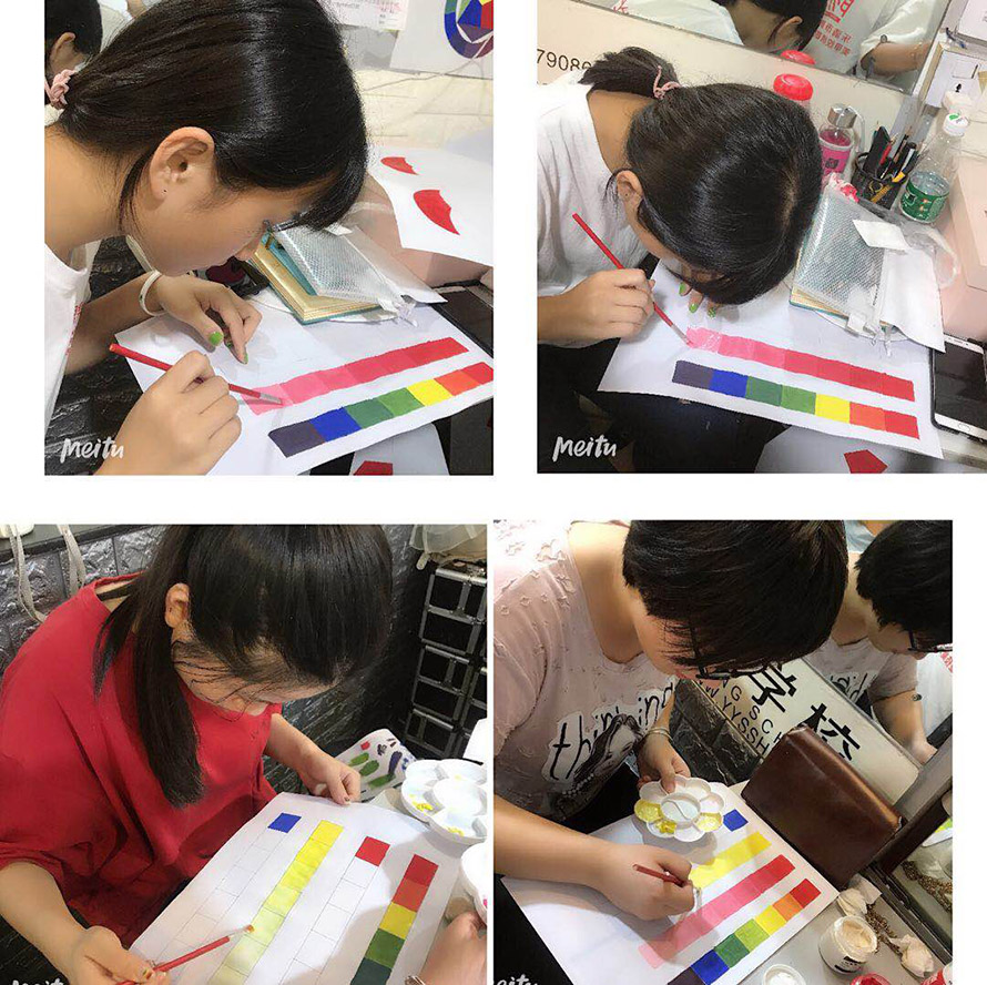 0基礎(chǔ)的同學(xué)們正在用“紅、黃、藍(lán)”三原色,調(diào)和出其它各種顏色,學(xué)習(xí)色彩只聽不練其實(shí)不行的,特別對(duì)于新手化妝師,所以建議大家有機(jī)會(huì)的話都要練習(xí)下色相環(huán)。