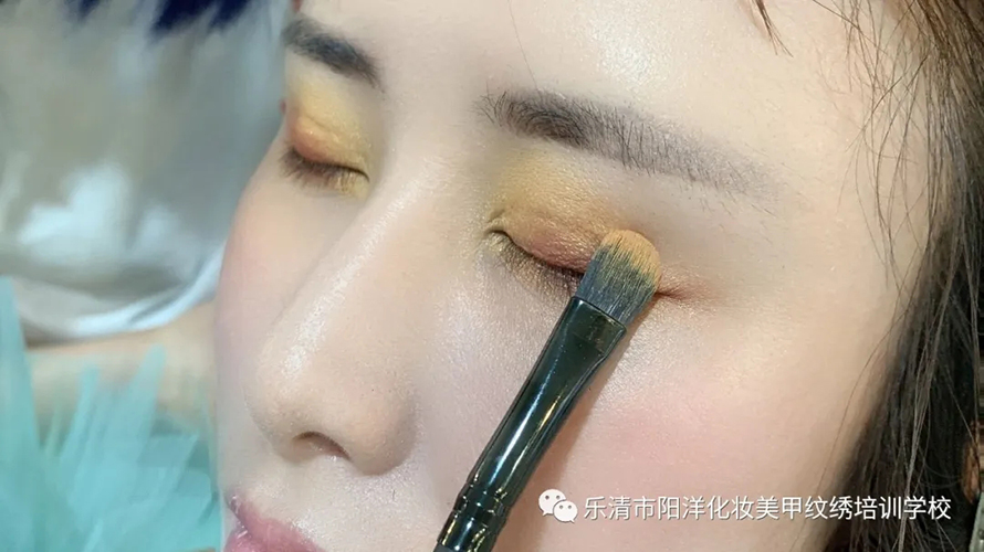 底妝完成后,我們就開始眼妝部分了哦!眼影重點(diǎn)在眼窩處,從外眼角到內(nèi)眼角輕涂暈開,眼頭處顏色不要深刷子提亮眉弓骨并掃開眼影邊緣顏色,要做到有形而無框