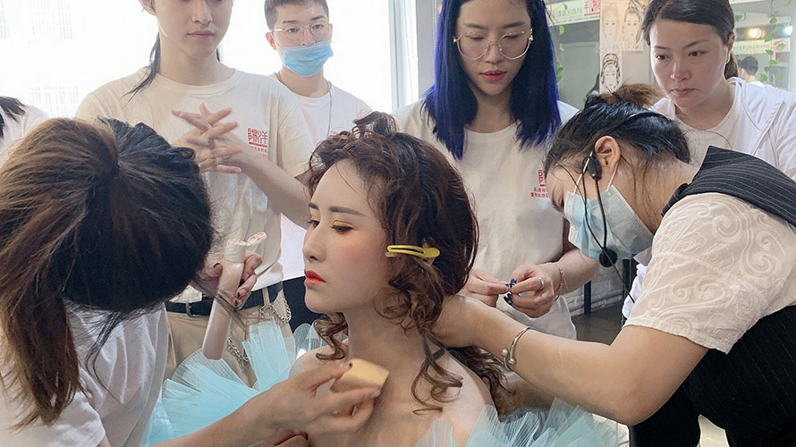 妝面完成后,我們也一定要注意脖子與臉部的銜接,不要出現(xiàn)假面的現(xiàn)象哦,涂上身粉銜接哦。