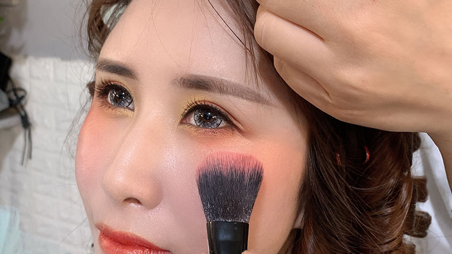 妝面的最后一個步驟,涂抹液體腮紅,液體親膚力強(qiáng),底妝更輕薄,但需注意液體腮紅用量,用手指在笑肌上方上妝,推開腮紅邊緣。加深腮紅中間顏色,臉頰兩邊同時上腮紅, 高光提亮腮紅邊緣。