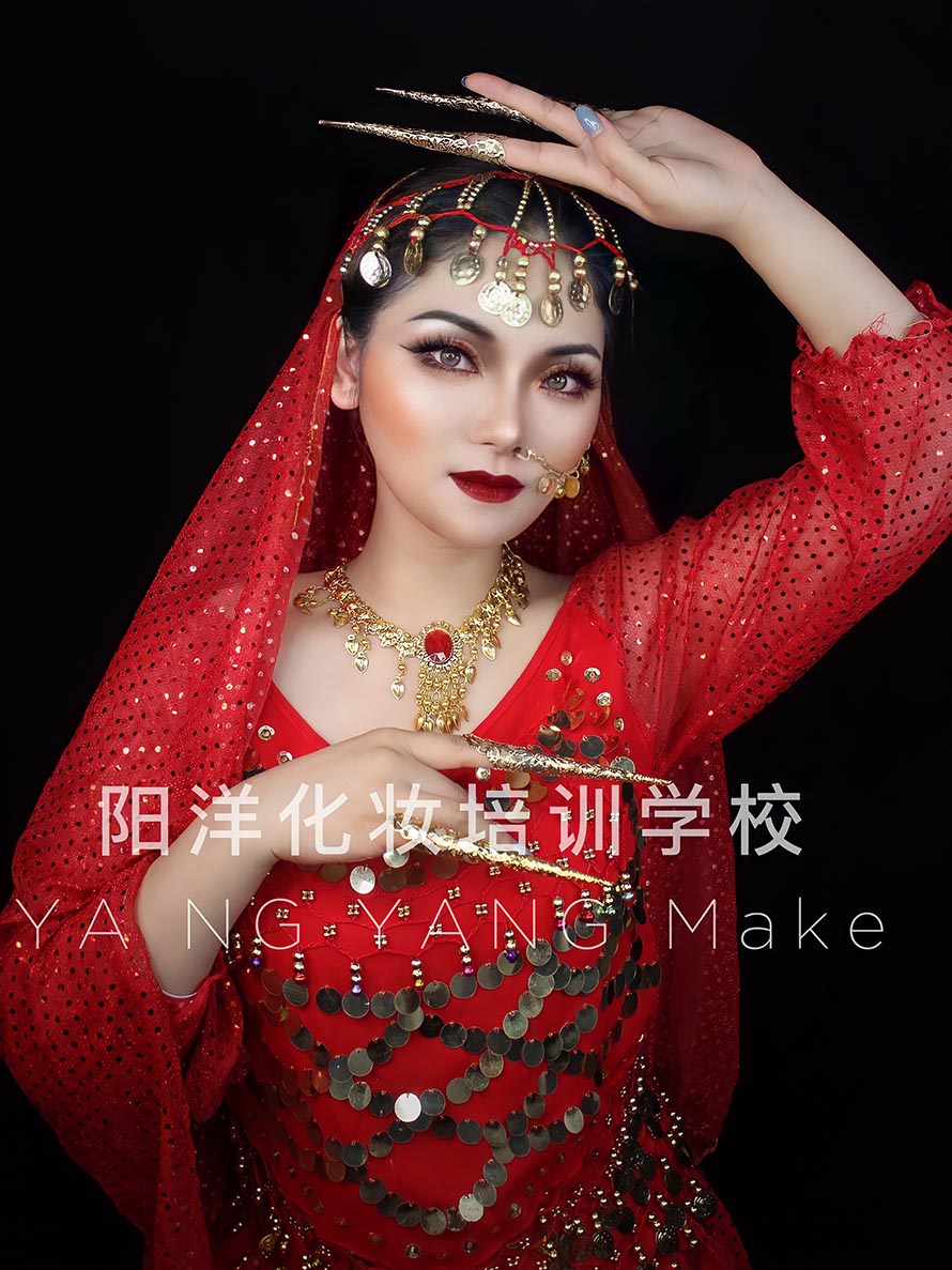 印度妝體現(xiàn)的是一種濃眉大眼加性感雙唇的立體形象,此款?yuàn)y容出現(xiàn)在個(gè)性主題派對上也是可是炫酷十足,