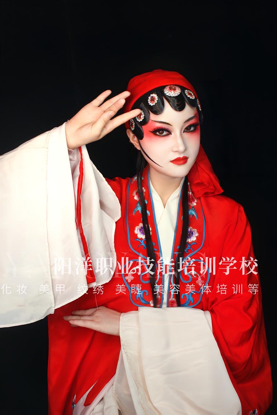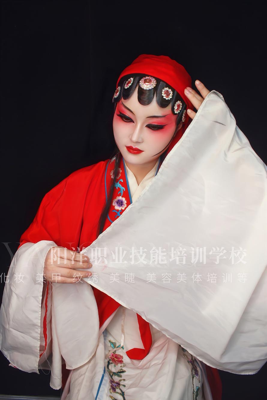 勒頭就是用布帶子把頭勒緊,把眼睛吊起來(lái),以便更好的塑造角色的造型、性格。