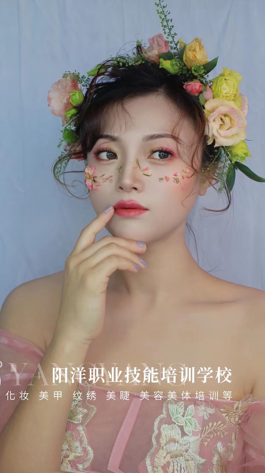 選用的都是妝容和鮮花的顏色一定要是同色系,才能結(jié)合起來。給人一種朦朧美的感覺,