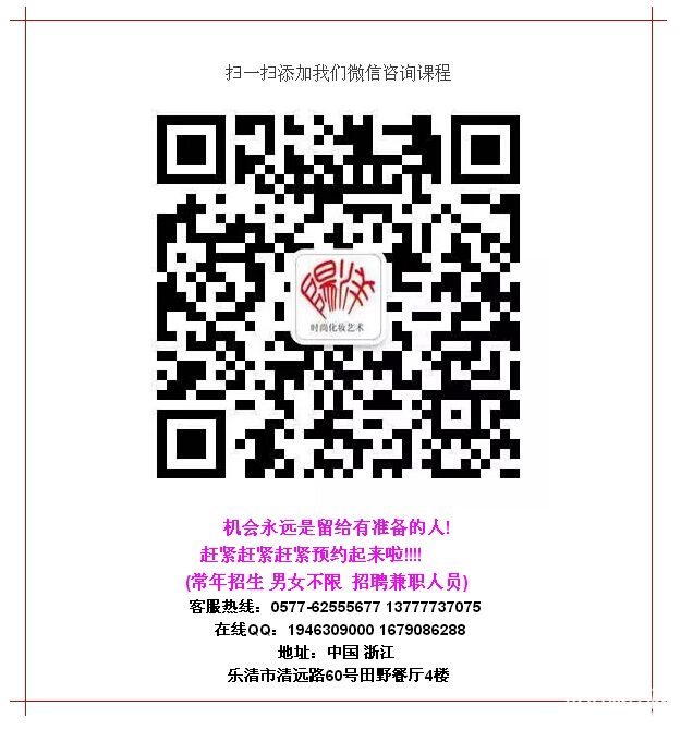 培訓(xùn)為主導(dǎo)的綜合性、專業(yè)化培訓(xùn)學(xué)校。 名師一對(duì)一全程輔導(dǎo)。樂(lè)清首家較專業(yè),較具實(shí)戰(zhàn) 經(jīng)驗(yàn),較大規(guī)模的化妝造型團(tuán)隊(duì)!名師全程手把手 傳授各種時(shí)尚彩妝,美甲,發(fā)型技巧,無(wú)須繞彎, 直達(dá)頂峰!學(xué)習(xí)期間無(wú)任何隱形消費(fèi),眾多明星御 用化妝師親自授課,包教包會(huì),學(xué)會(huì)為止!真正 100%推薦就業(yè)!