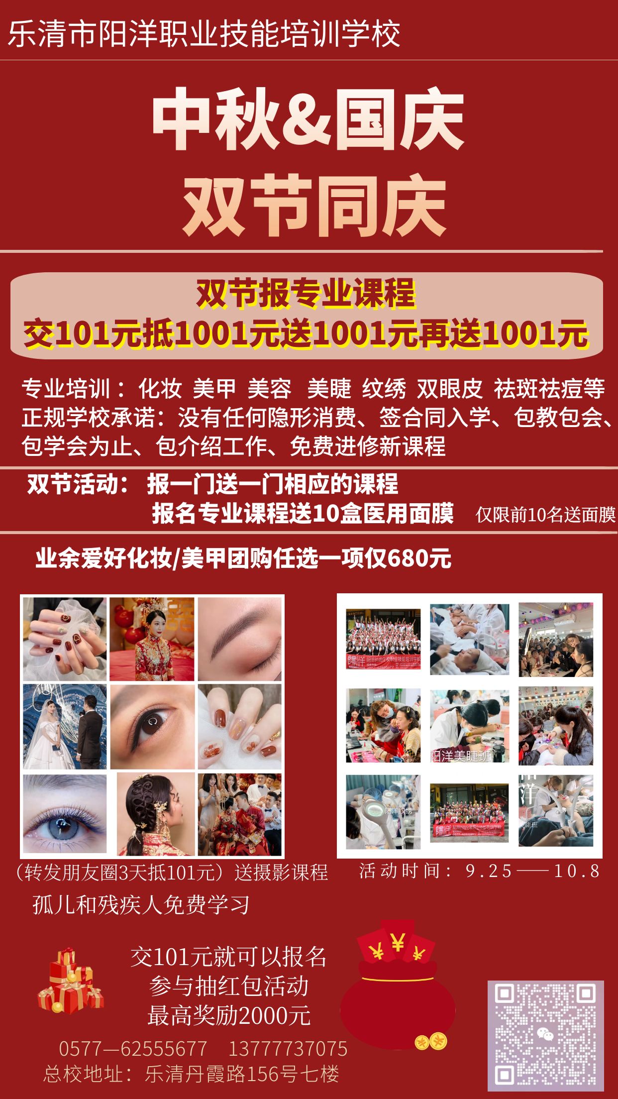 - 樂清陽洋化妝培訓學校喊你來砸金啦!你還在等什么?
