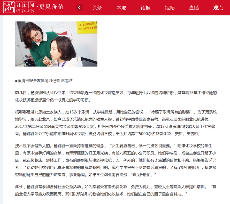 以她專業(yè)的授課模式,專注的化妝技能,2018年評(píng)為“樂(lè)清市工匠” “樂(lè)清市高級(jí)技能人才 ” “樂(lè)清市楊娜娜大師工作室“都是政府部門(mén)頒發(fā)給楊娜娜老師榮譽(yù)稱號(hào)。