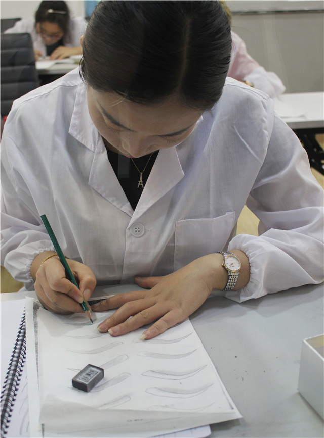 我很喜歡這所學(xué)校,喜歡學(xué)校李的每一位女子,因為在她們身上我看到了一個現(xiàn)代女性愛學(xué)習(xí),渴望知識,不斷拼搏向上的精神, 值得我敬佩的不屈的朝氣蓬勃的生命,在學(xué)校的課堂中,陳老師認(rèn)真負(fù)責(zé)的教學(xué)態(tài)度讓我受益匪淺,從一開始講解的紋繡理論知識, 再到老師手把手的在練習(xí)皮紙上的操作,如何設(shè)計適合客戶的眉形,眉眼唇色乳的調(diào)配等等,我求知若渴也常常向老師討教不懂的問題,