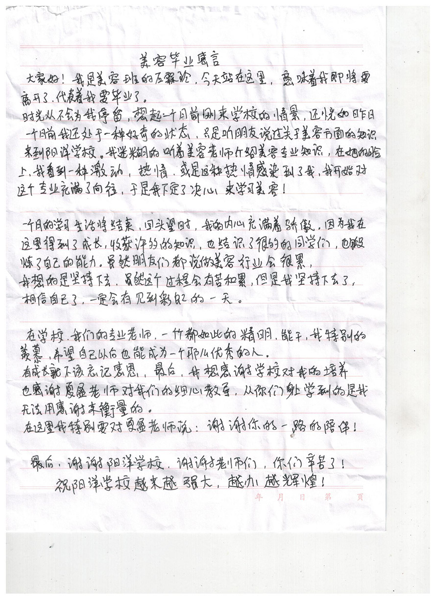 當(dāng)前位置:樂清市陽洋職業(yè)技能培訓(xùn)學(xué)校 » 學(xué)員感悟石霖玲美容畢業(yè)感言發(fā)布時(shí)間:2019-9-17 15:43:54瀏覽次數(shù):1967 |