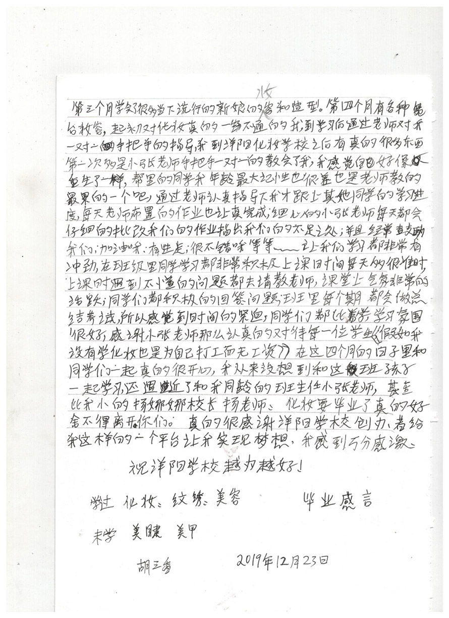 當(dāng)前位置:樂清市陽洋職業(yè)技能培訓(xùn)學(xué)校 » 學(xué)員感悟胡三香畢業(yè)感言發(fā)布時(shí)間:2019-12-24 13:30:37瀏覽次數(shù):1968 |