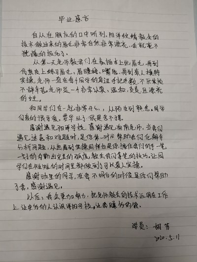 當(dāng)前位置:樂清市陽洋職業(yè)技能培訓(xùn)學(xué)校 » 學(xué)員感悟胡芳畢業(yè)感言發(fā)布時(shí)間:2020-5-27 14:22:46瀏覽次數(shù):1992 |