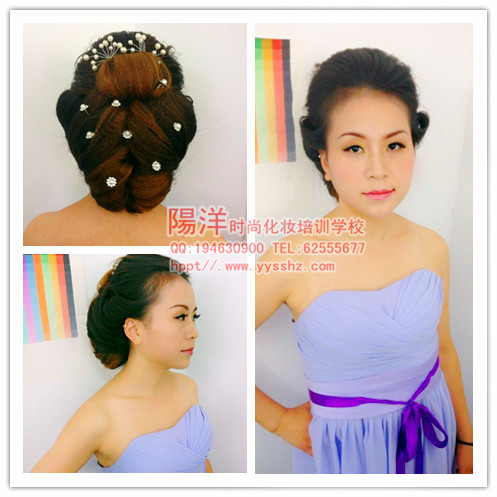 開始的時候老師都是從最基礎的只是教起,讓我們了解到化妝工具的認識和各自的用處。當時還真有點傻傻的了。第一次知道化妝需要的工具真不少,因為我們都是零基礎學習老師講會細心,耐心的把它們所知道的東西交給我們,還要我們努力的學習,只要每天進步一點點都是好的,慢慢的學會了,修眉,打底,眼影等。也能畫出一個完整的妝面了。 很快的進入了下個月的學習,老師說了每一個月的學習都是為了下一個月的學習打基礎。所以不能放松學習,還真如所想的一個月比一個月的學習要難。我是自己頭發(fā)都不怎么會扎的,那時候要在別人頭上練習做頭發(fā)。還真是暈了。因為老師教導我們的辮子和做造型的各種手法。我們學到了做出來都是亂七八糟的。但是老師還是會安撫我們鼓勵我們,做不出來做不好老師還是會不厭其煩的手把手的教我們。當時還真怪自己手太笨。經(jīng)過一天天的努力學習,慢慢、、的也熟練了老師教導的手法。也能做出簡單的造型了,也能獨立完成各種不同的新娘發(fā)型,隨之而來面臨的是新娘的創(chuàng)意妝面,讓我們的學習變得更加緊張了。要想做出一款像樣的造型出來。還需要一定的審美意識。所以學習中有時候也很困惑,沒什么概念。但老師會教導我們要多看書籍,,雜志之類的,看多了自然審美度就提高了。也就會有概念的,我們努力的練習老師交給我們的各種妝面,也試著去做自己想出來的造型,做出來老師都會為我們改進。學校會經(jīng)常安排我們去外面實習的機會,讓我們鍛煉自己的技術和膽量,出去增長見識,提供更多的學習機會給我們,當時的機會都沒有把握現(xiàn)在想想以前自己的懶惰。 我奉勸在校的學生現(xiàn)在要把握好實習的機會。不能懶惰。 學習結束了,感謝陽洋時尚化妝學校,和學校的教導老師給我們提供了好的學習平臺,讓我們學到了專業(yè)的知識,同時也希望學校以后能越辦越好?。。?!