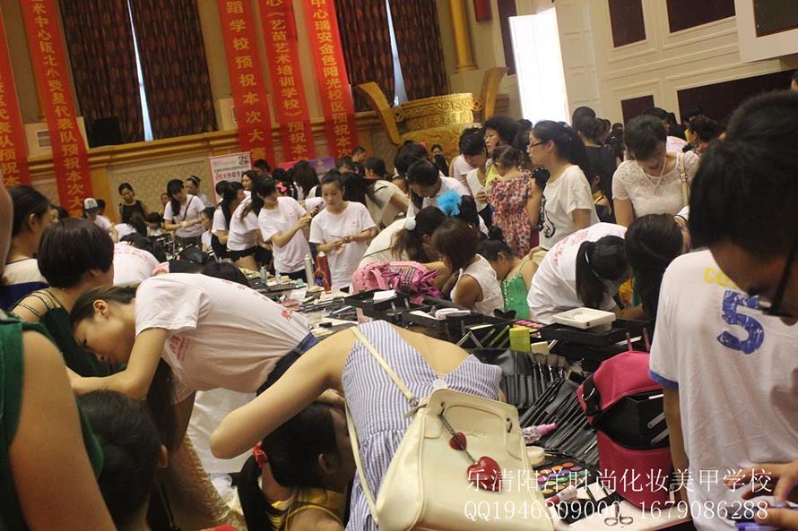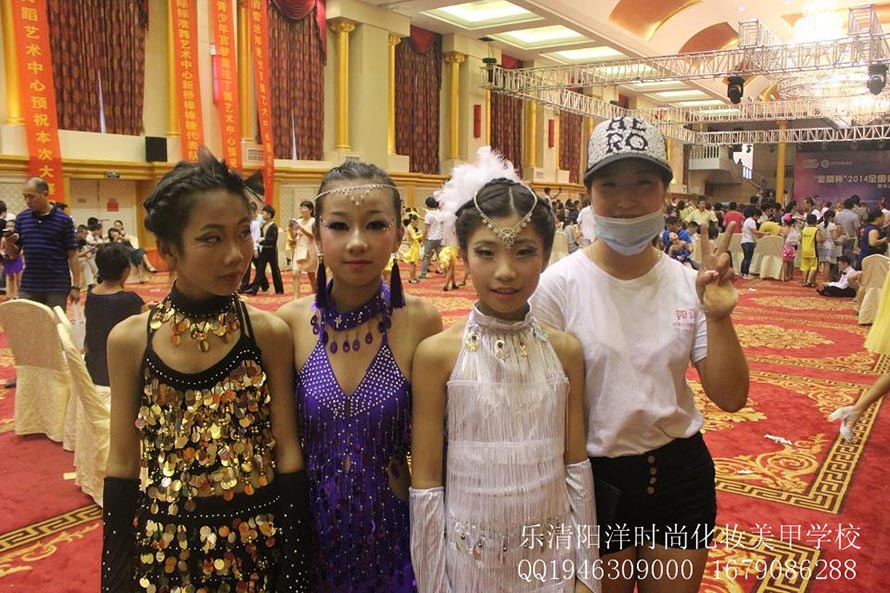 樂清陽(yáng)洋時(shí)尚化妝美甲學(xué)校才學(xué)一個(gè)多月的學(xué)員們面對(duì)800多人的化妝 ,運(yùn)用在校所學(xué)到的化妝技術(shù)和最扎實(shí)的化妝基本功,化出一個(gè)個(gè)精美的妝面,得到了很多家長(zhǎng)的贊賞和參賽選手的喜愛。最短才學(xué)十來(lái)天的學(xué)生們跟著大班學(xué)生實(shí)習(xí) ,學(xué)員們的青春有著朝氣蓬勃的氣息,對(duì)化妝的熱忱。本次"金鼎杯"全國(guó)拉丁舞比賽讓學(xué)員充分的得到了充分鍛煉和展示。