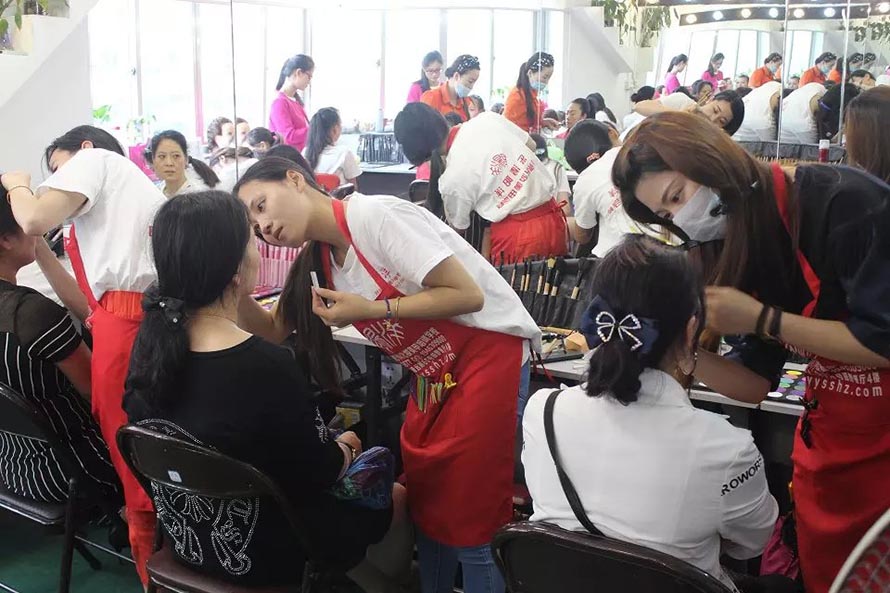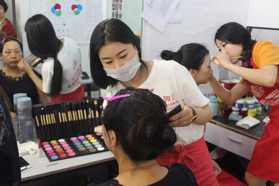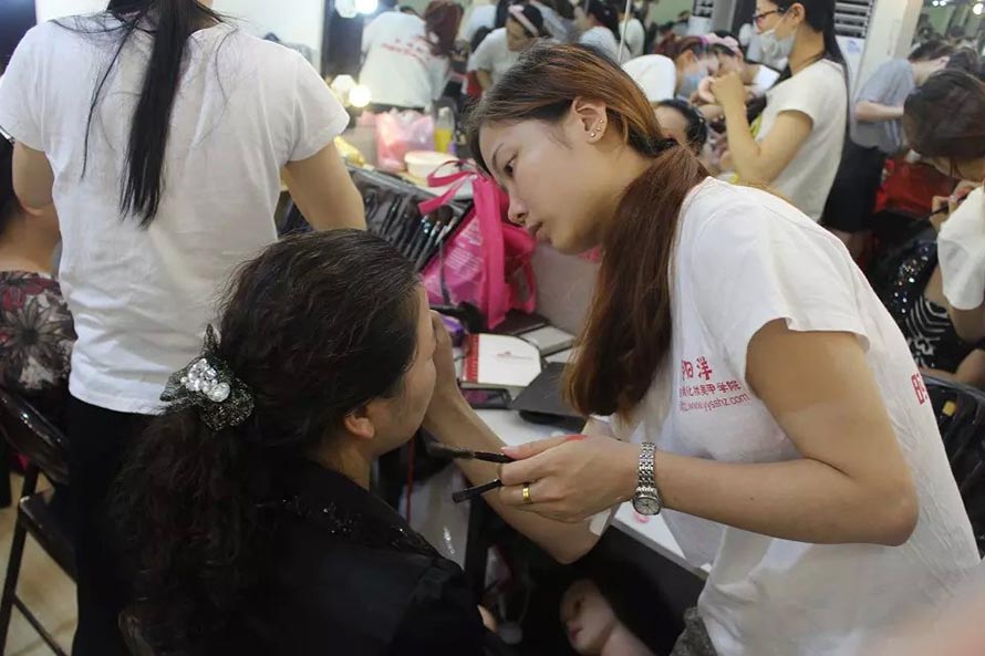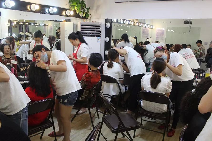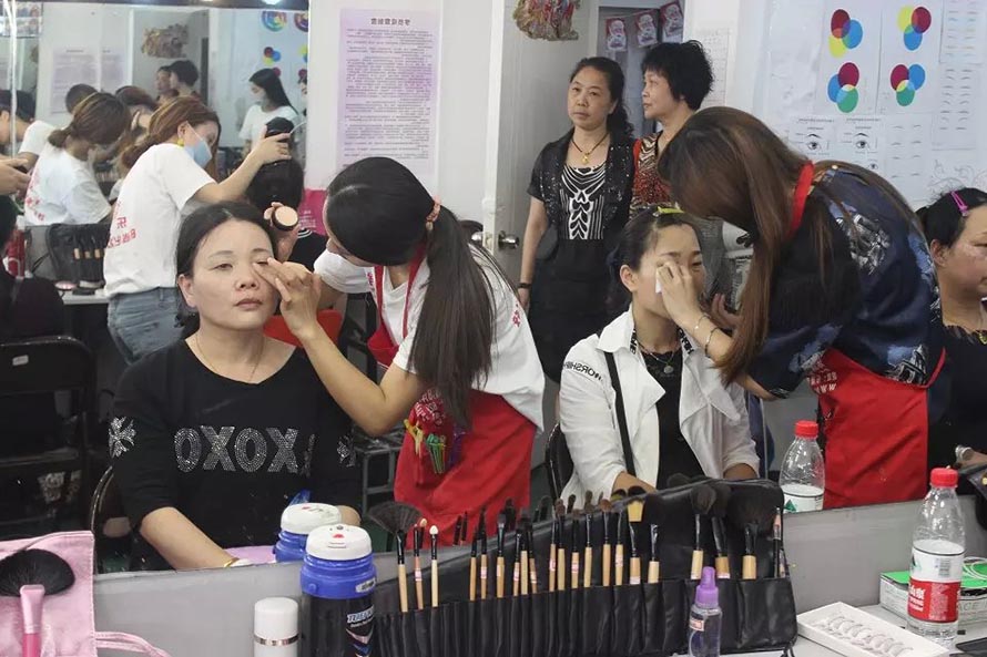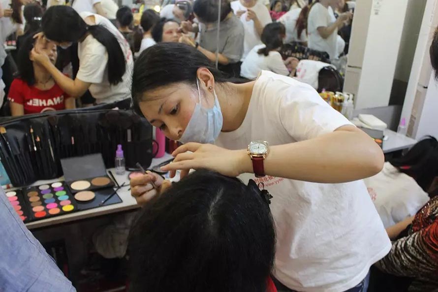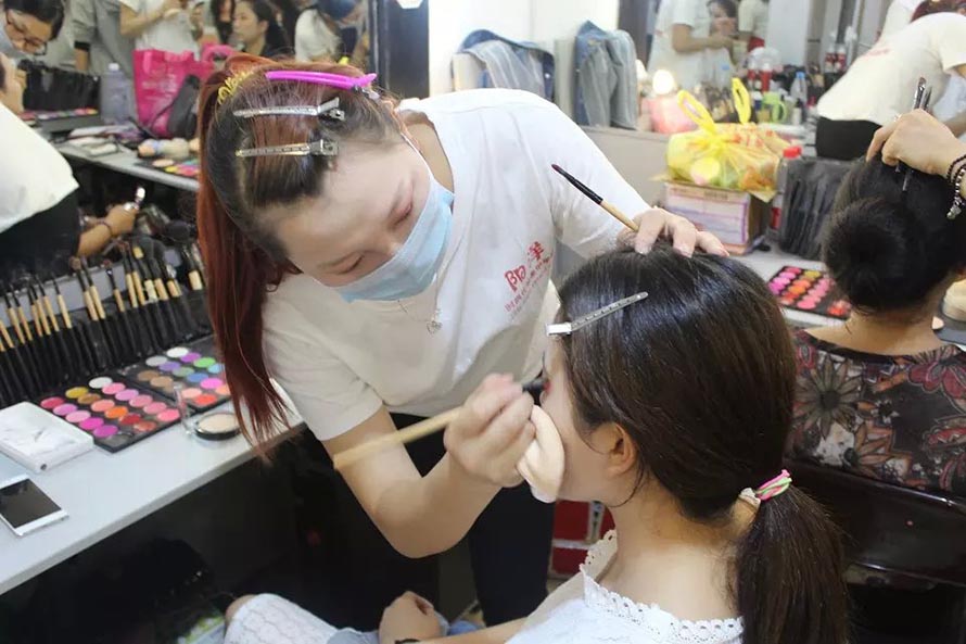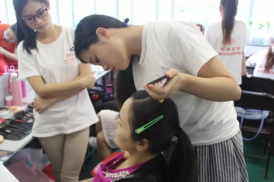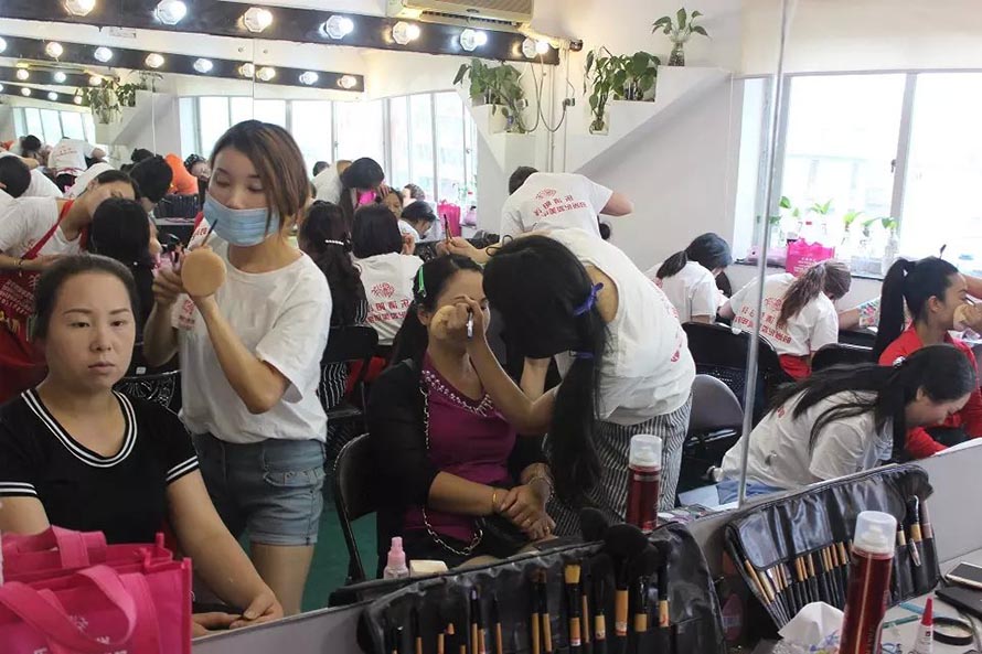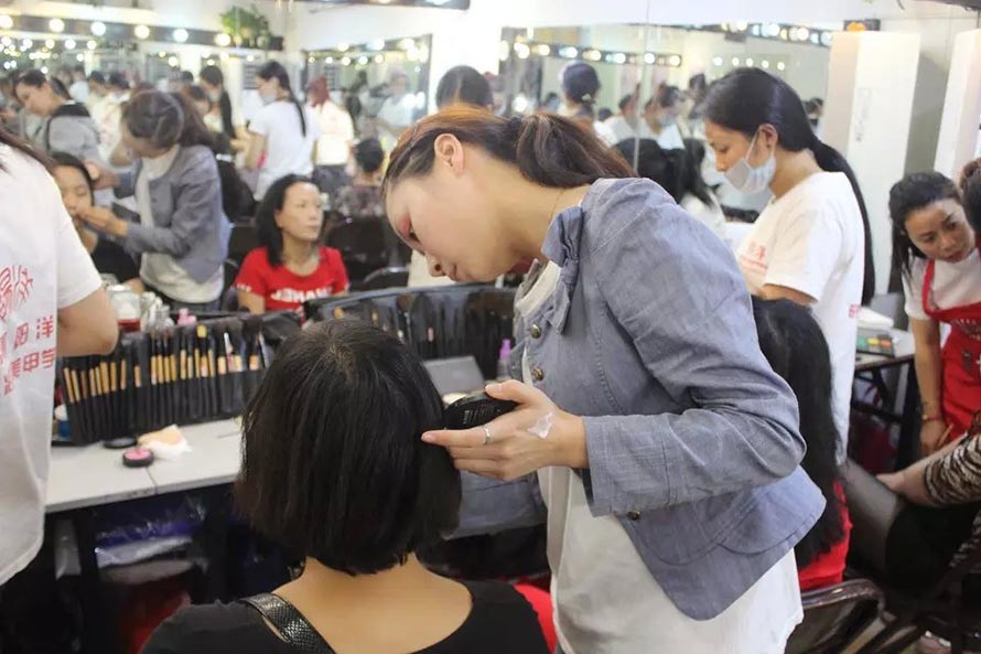 5月25日,樂清陽(yáng)洋時(shí)尚化妝美甲學(xué)?;瘖y班學(xué)員應(yīng)邀為樂清市“五市六城”文藝演出的學(xué)生提供化妝造型,為學(xué)生們化上她們?nèi)缫獾膴y容和造 真正要學(xué)會(huì)一門技術(shù),怎能沒有豐富的實(shí)習(xí)活動(dòng)來(lái)提升呢?樂清陽(yáng)洋時(shí)尚化妝美甲學(xué)校堅(jiān)持著理論與實(shí)踐想結(jié)合的系統(tǒng)科學(xué)教育方針,讓學(xué)員們?cè)谡n堂掌握基礎(chǔ)知識(shí)和技能后,提供各種不同場(chǎng)合的化妝實(shí)踐活動(dòng)讓學(xué)員適應(yīng)職業(yè)化妝師的工作。在化妝實(shí)踐活動(dòng)中不斷提升隨機(jī)應(yīng)變和現(xiàn)場(chǎng)操作能力。