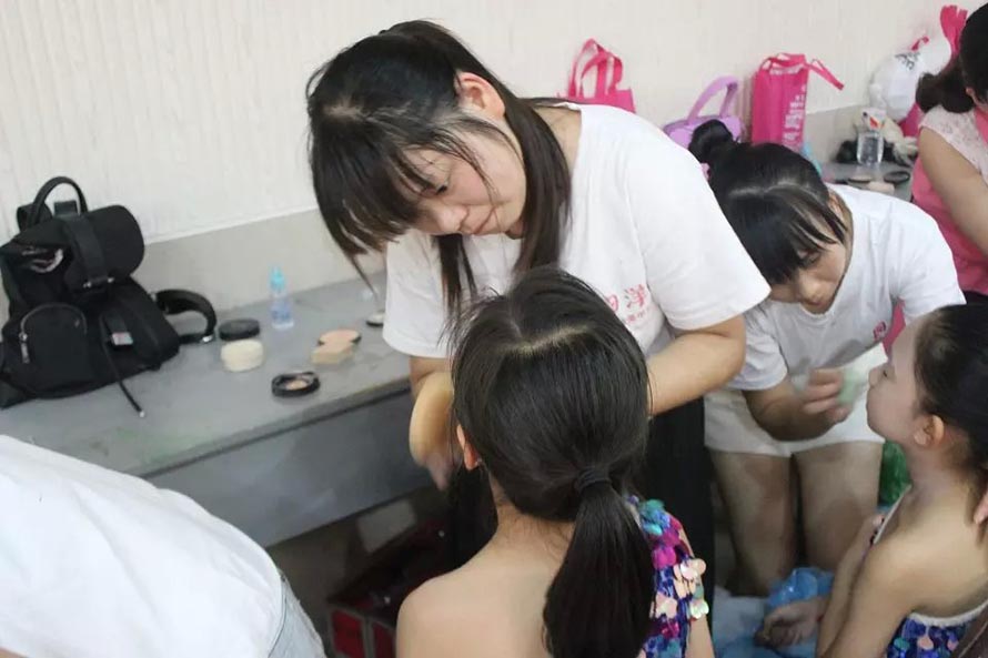 柳市蕾絲舞蹈演出圓滿成功~~化妝現(xiàn)場如此多的人~今天雖然演員有500多人~我們只用了5個小時妝面和發(fā)型基本全部搞定~雖然很忙碌~但是今天化妝現(xiàn)場次序特別好~一點不亂~老師們管理特別好舞臺上的每一位可愛的演員們都是我們學校的化妝師一個下午的勞動成果~各種各樣的妝都有~主要有戲曲妝,歐式妝~倒勾妝~球體眼妝~炫彩煙熏妝等~爵士舞蹈妝~拉丁舞妝~芭蕾舞妝等~28號白象蕾絲舞蹈~30號柳市蕾絲舞蹈~一起一共1000多個舞蹈者是有的~28號那天學生跟妝7點回家~30號跟妝9點回家~感謝蕾絲舞蹈老師對我們的信任~感謝我們陽洋化妝學校的每一位化妝講師~感謝我可愛的同學們~大家都很愛實習~每次實習進步都特別大~速度也很快~努力了一定會有收獲哦~~~