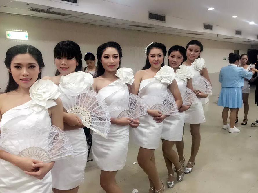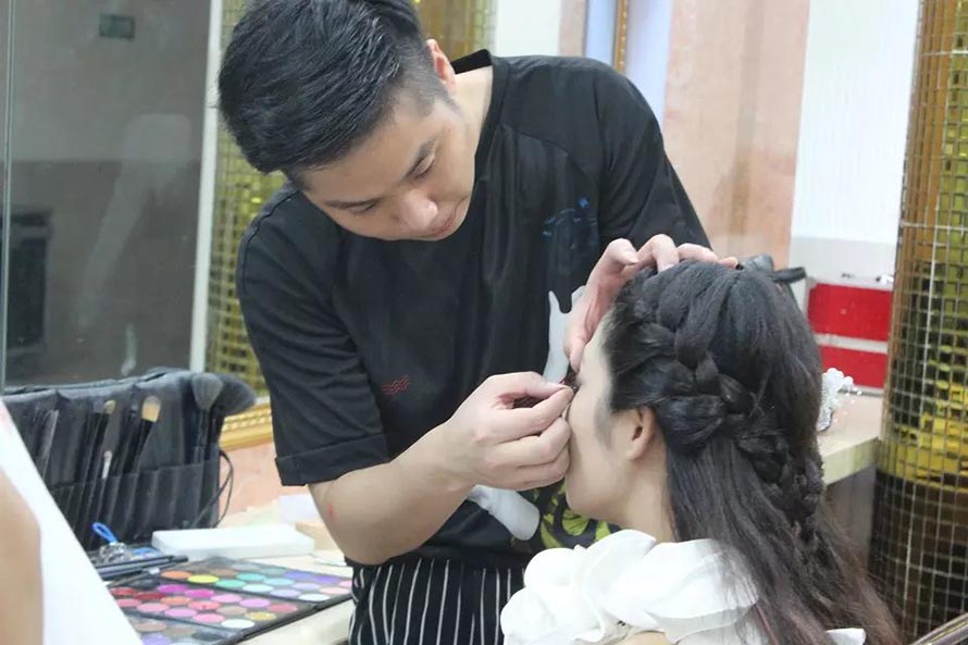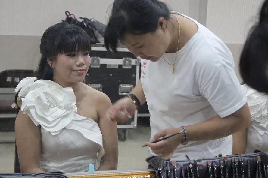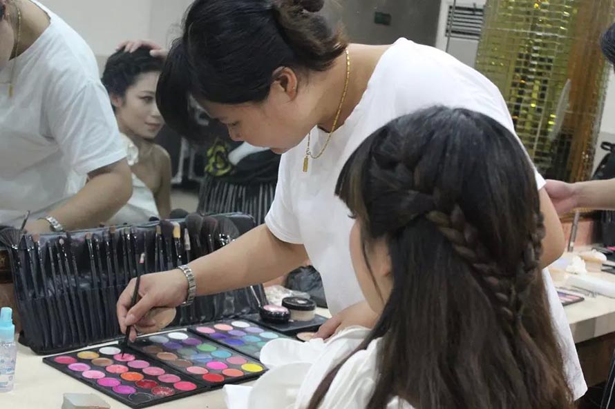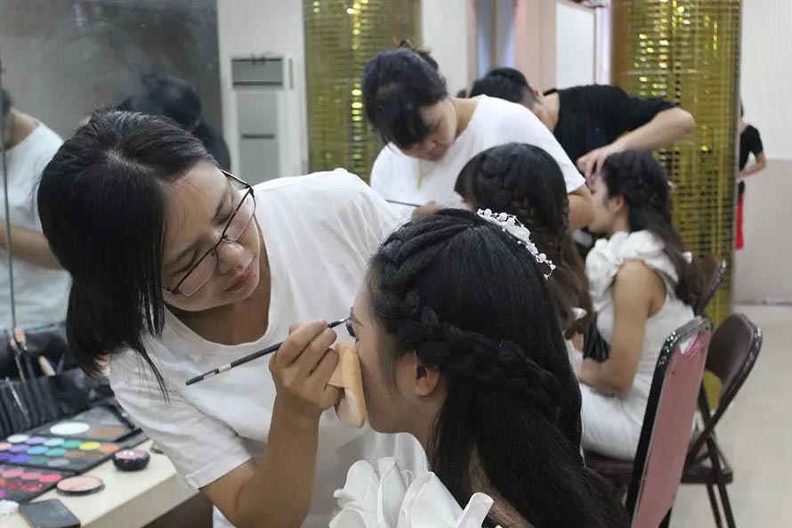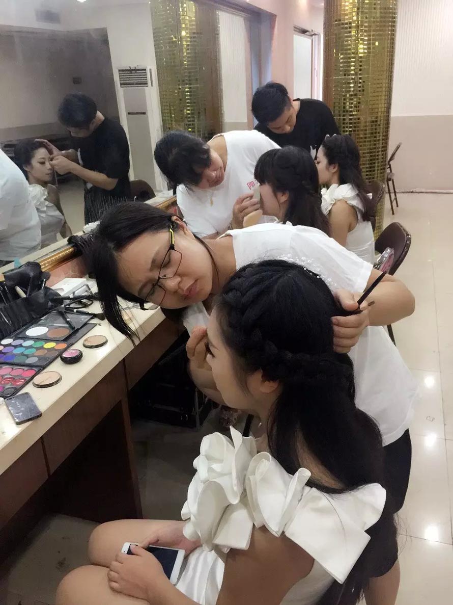 2015年8月8日樂清陽洋時尚化妝美甲學(xué)校受春華教育集團之邀為他們的演出人員化妝造型?;瘖y現(xiàn)場同學(xué)們拿出平時練習(xí)的狀態(tài)給演出人員化妝,化完妝的演員們對同學(xué)們的化妝技術(shù)贊不絕口,同學(xué)們十分的有成就感,此次實習(xí)大大提升了同學(xué)們的自信心,也讓自己的化妝技術(shù)更加熟練。