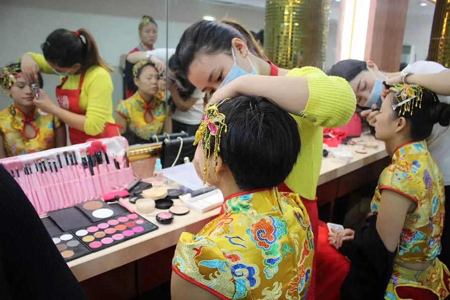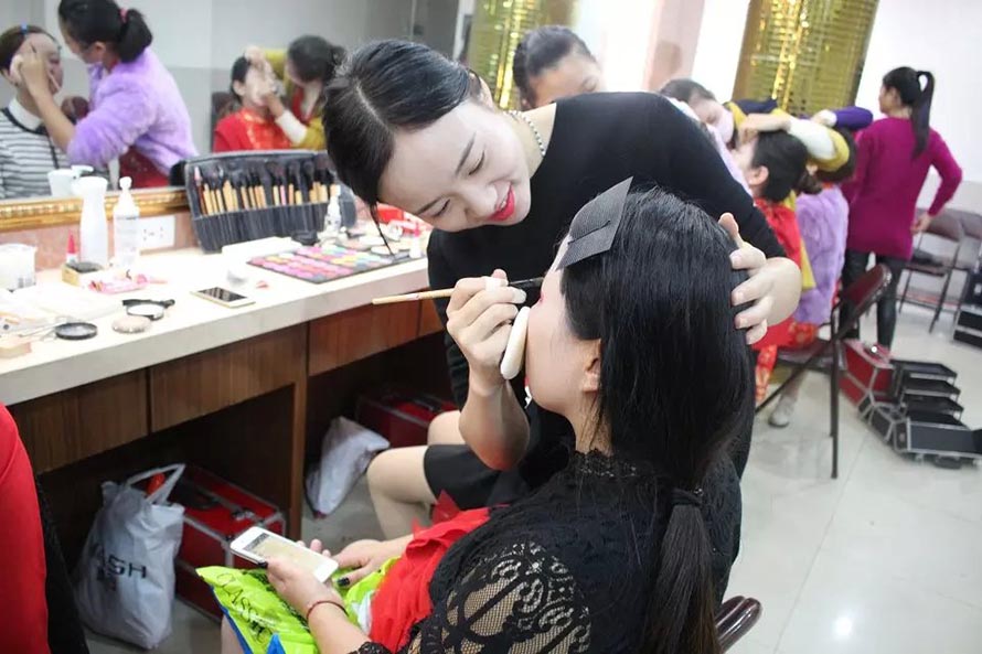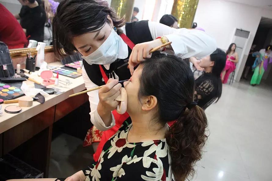 樂清陽洋時尚化妝美甲學校的專業(yè)學員應邀擔任此次活動的化妝造型工作,承擔了活動主持人、員工、、以及節(jié)目表演者整體形象設計。整場化妝造型工作持續(xù)1個多小時,并受到了公司的領導、嘉賓、及員工的廣泛好評