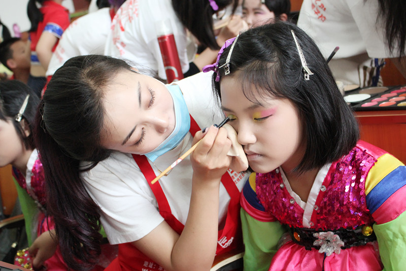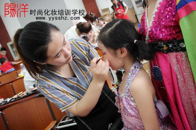 參加此次活動(dòng)的公派化妝師 化妝新班一班,二班,三班為此次活動(dòng)提供化妝造型服務(wù),樂(lè)清陽(yáng)洋化妝培訓(xùn)學(xué)校的學(xué)員一到現(xiàn)場(chǎng),便馬不停蹄地開始緊張有序地工作,各施所長(zhǎng),給等待上妝的孩子們精心打造完美的妝容,讓孩子以一種最美的姿態(tài)展示于現(xiàn)場(chǎng)。