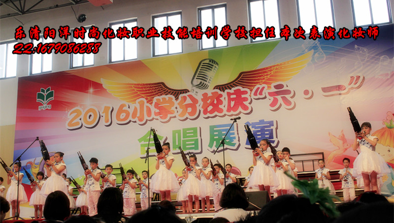 樂清陽洋時(shí)尚化妝職業(yè)技能培訓(xùn)學(xué)校一天擔(dān)任幾所學(xué)校六一表演化妝師!