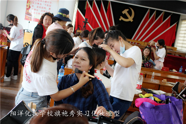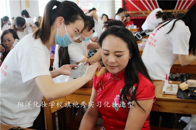 陽(yáng)洋化妝學(xué)校的學(xué)員們給樂(lè)清百人旗袍秀化妝哦,一起來(lái)看看她們的服務(wù)吧~