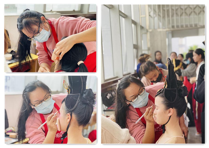 陽洋學校團隊的力量 在我們陽洋化妝學校的團隊老師的帶領(lǐng)下,陽洋學員學習在化妝1個多月的時間,對在場的幾百名的表演選手,都能快速有序的完成所有的化妝加造型。每個學員的進步,都是非常的大。