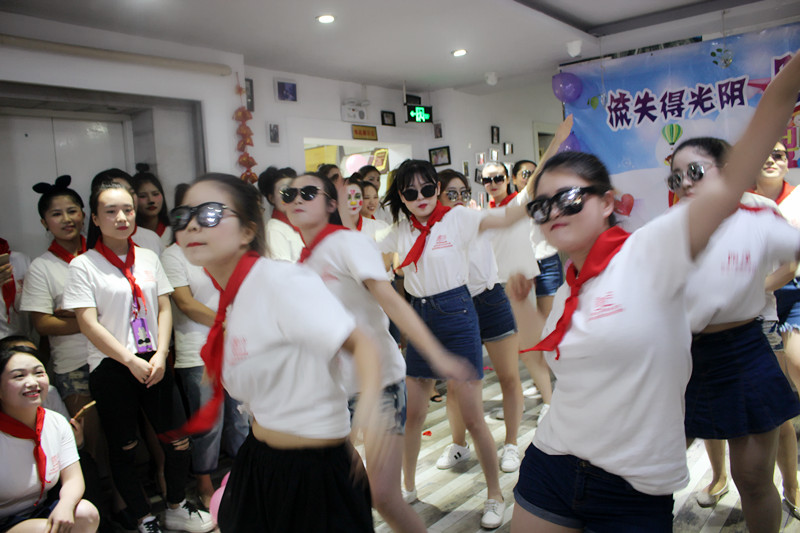 唯一男老師介紹完了,接下來(lái)就是唯一男同學(xué),王平同學(xué)憑借幽默的優(yōu)勢(shì),整個(gè)現(xiàn)場(chǎng)氣氛全部被帶動(dòng)!旁邊的女同學(xué)全都忍不住上來(lái)熱舞一番!看照片都知道氛圍有多嗨!