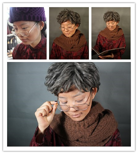 4.做效果:可點(diǎn)老年斑,在額頭、鬢角等處搽粉底或油彩做白發(fā)效果。