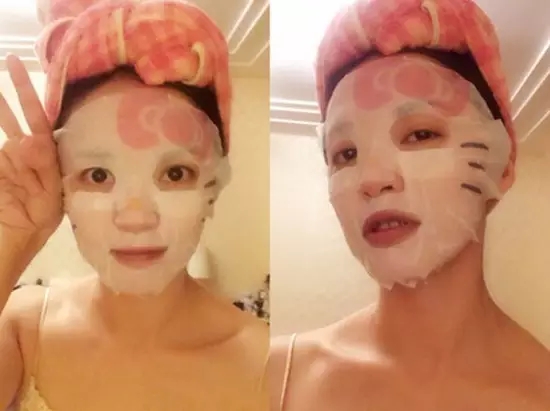 還有容貌備受爭(zhēng)議的楊穎 在《跑男》錄制的空隙 也不忘來(lái)一貼面膜滋養(yǎng)肌膚