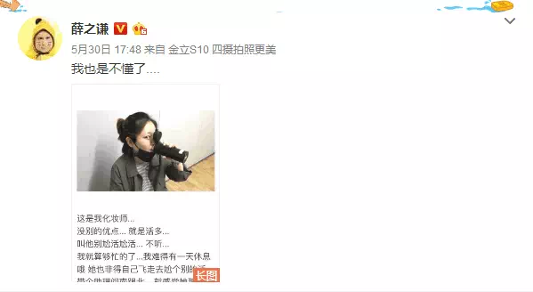 | 薛之謙公開(kāi)懟的化妝師火了!但還有很多你不知道的事兒…微博上著名的“段子手”薛之謙,此前專門為他的化妝師發(fā)了一篇微博,并貼出長(zhǎng)圖文關(guān)于化妝師的那些事。
