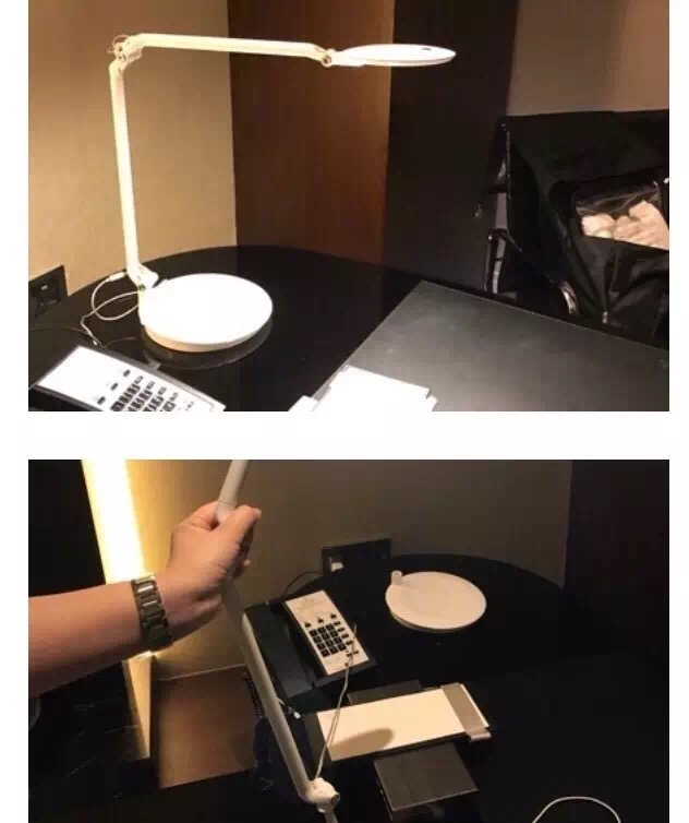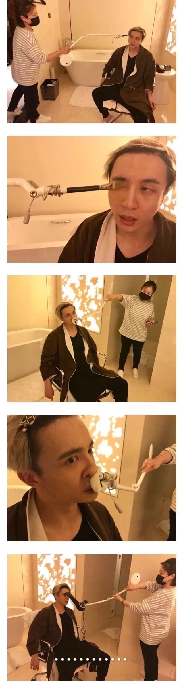 為了避免近距離接觸,化妝師機(jī)智的把臺(tái)燈拿去進(jìn)行了改造。