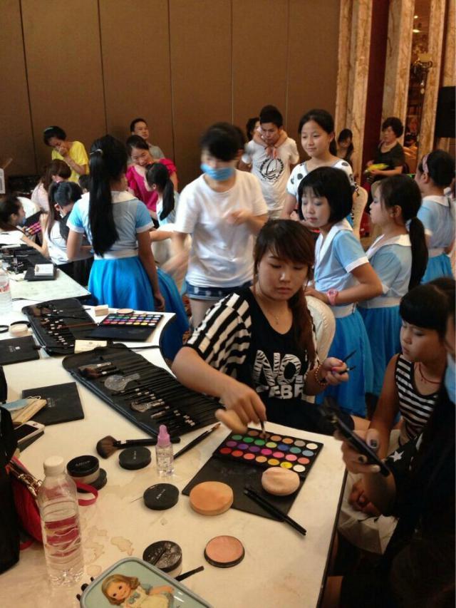 陽(yáng)光明媚,陽(yáng)洋時(shí)尚化妝培訓(xùn)學(xué)校的學(xué)生,為蕾絲舞蹈的可愛的小朋友們化妝,小朋友高興極了,一個(gè)個(gè)歡蹦亂跳,看著這群可愛的朋友們,化妝師們?cè)傩量嘣倮哿艘仓盗?,現(xiàn)在我們看看那天化妝師為可愛小朋友化妝的場(chǎng)景吧?。?/span>