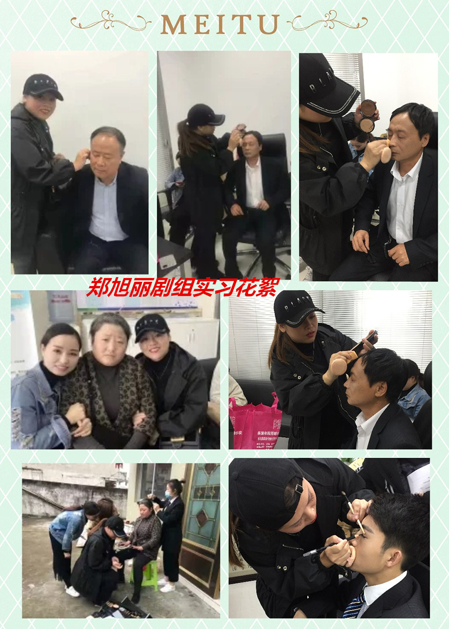 張正花,王曦,晏蓮霜同學(xué)給演員化妝合影花絮, 學(xué)校都會經(jīng)常給學(xué)生安排提供大量的實習機會,不管是舞臺妝還是影視妝,新娘妝,各種T臺秀妝容等,學(xué)校都會經(jīng)常安排學(xué)生出去實習,實操為主理論為輔的學(xué)習方式。